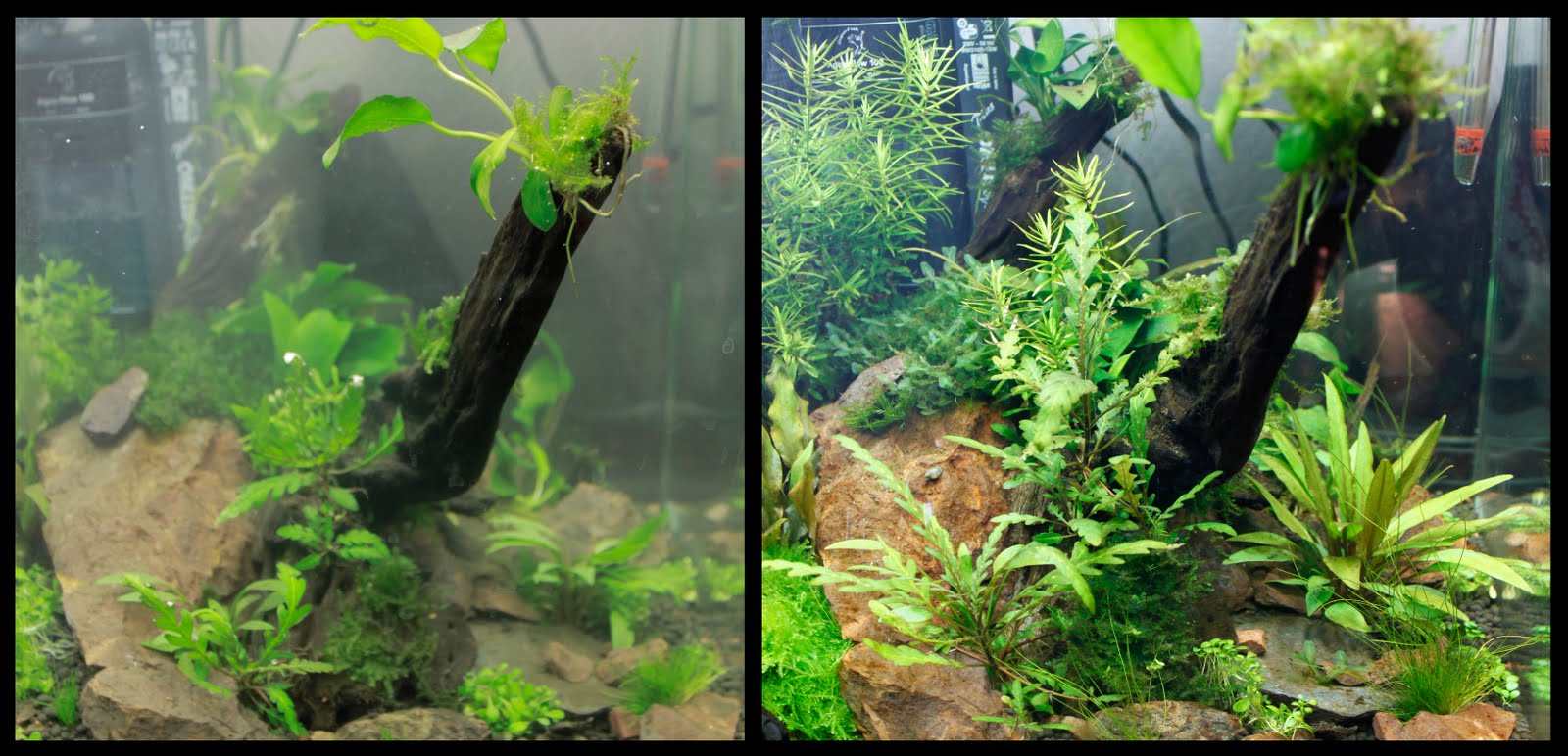 Quelques photos pour illustrer le tout, elle sont présentés comme ceci: la photo partie gauche est le bac au démarrage h+3, et l'autre est à H+1mois ^^