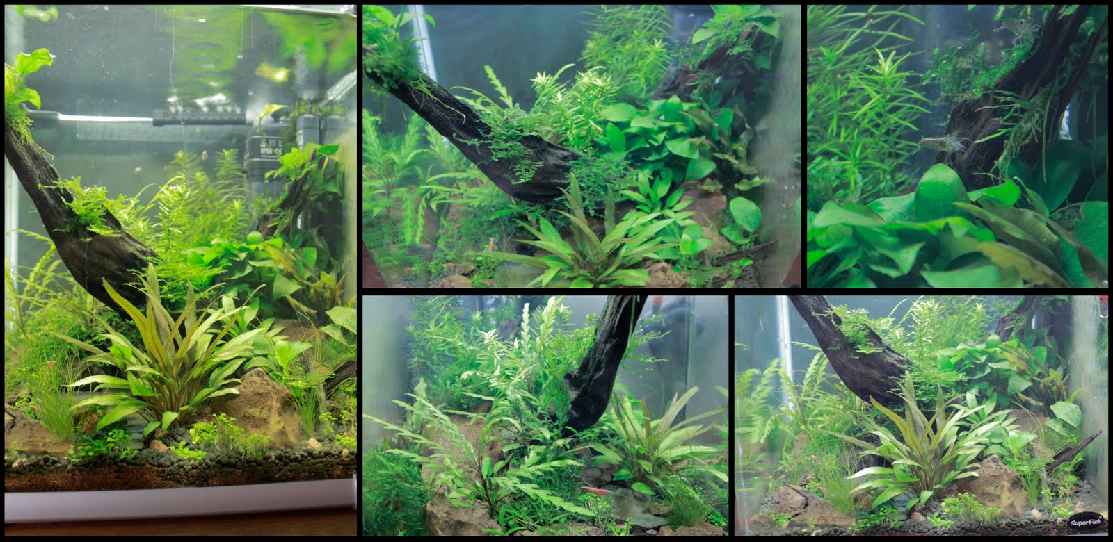J'ai eu un petit problème d'algues, je fertilise une fois par semaine avec une micro dose de ProFito, mais problème résolu en une semaine en supprimant une lampe dennerle 11 w (deux au départ ^^)